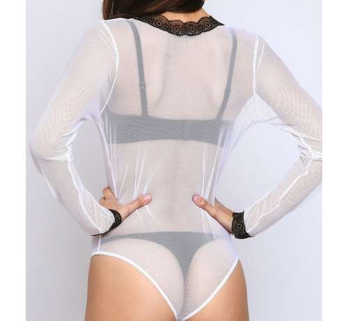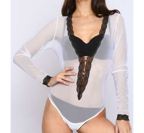 Body Débardeur Col V Dentelle Fleur Noir/Blanc