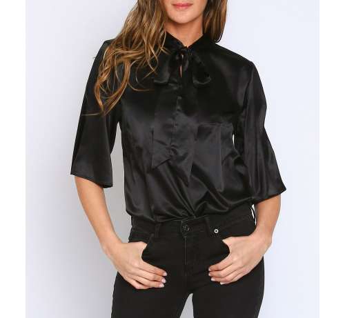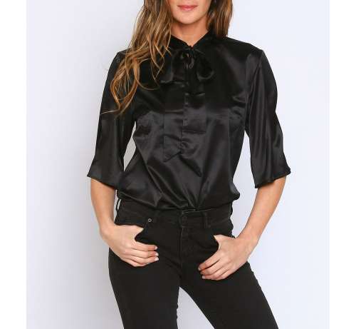 Body Manche Courte Noeud Satin-Noir