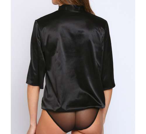 Body Manche Longue Élastique Satin Noir/Ecru
