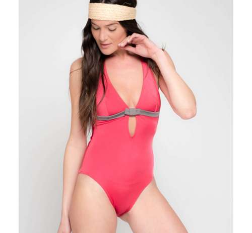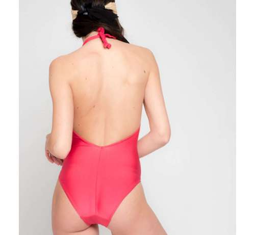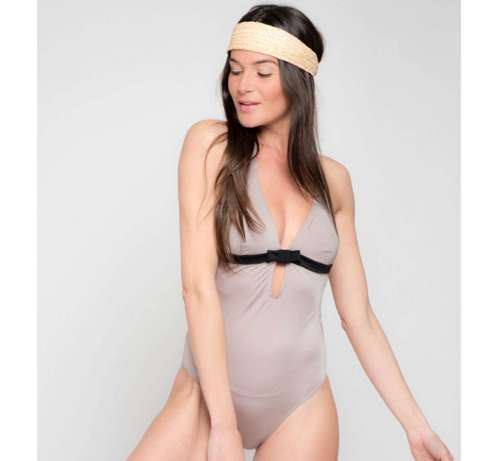 This beautiful swimsuit one-piece in neckerchief's form takes shape around the neck. A band of reinforcement is under the chest to support the big chests.A two coloured model and elegant.