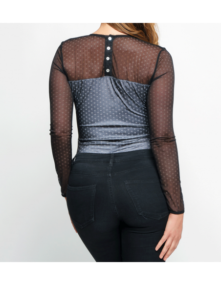 Body dentelle fleurie manche longue col rond: