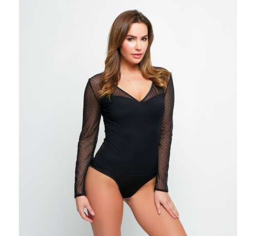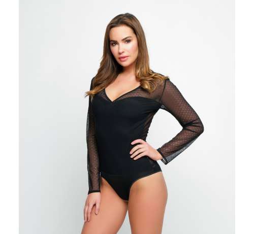 Ce modèle en dentelle fleurie noire est doublée d'un doux tissu coton noir en elasthanne non transparent, avec une élégante fermeture boutonnière quatre boutons en nacre dans le dos. La culotte est taille basse conçue pour un meilleur maintient dans les vêtements, elle est en polyamide noir non transparent. Ce body s'adapte à toutes les morphologies et se porte aussi bien la journée qu'en soirée.