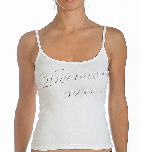 Débardeur de nuit coton avec fine bretelle et message coquin "Découvre moi" pour attirer votre homme sans dire un mot!