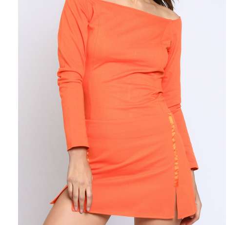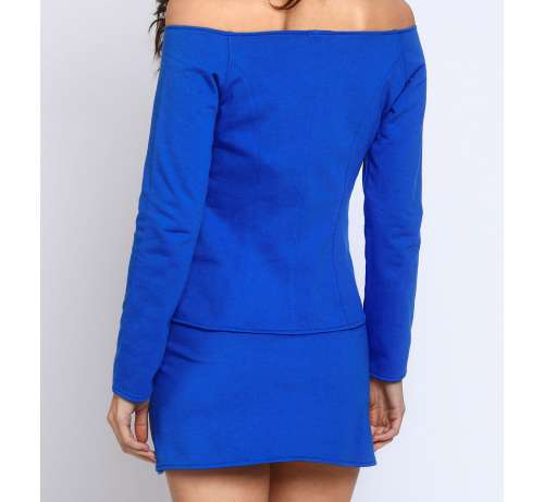 Une mini jupe taille basse glamour par sa coupe ajustée, ses fentes devant et ses rubans plaqués donnant l'illusion de portes jarretelles et casual par sa matière, un molleton doux et confortable à la fois.