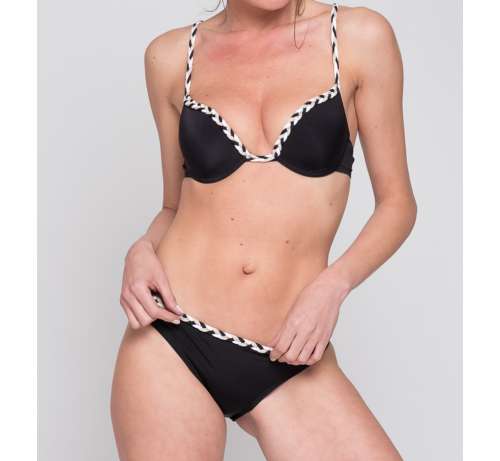 - un galon tricolore bordant la taille de la culotte et le décolleté du soutien gorge