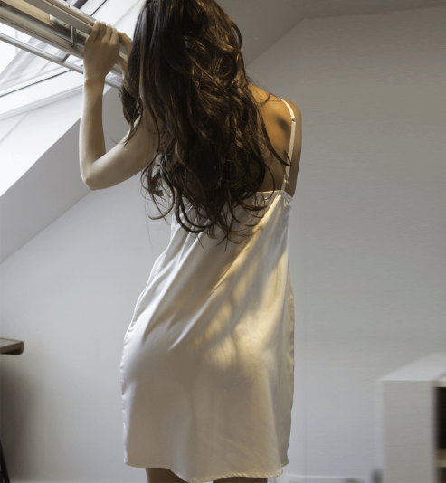 Comment être tout simplement sublime pour dormir avec votre chéri? En vous parant de notre manifique nuisette de satin et dentelle Ingrid. Une nuisette courte au décolleté plongeant cerné de dentelle délicate et fines bretelles ajustables.