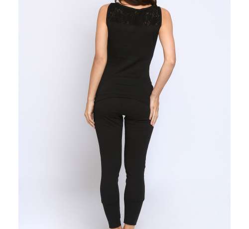 Ce legging en coton et dentelle ton sur ton aux genoux est très agréable à porter grâce à sa taille et à ses chevilles ajustable.