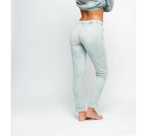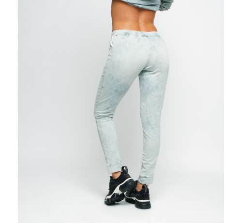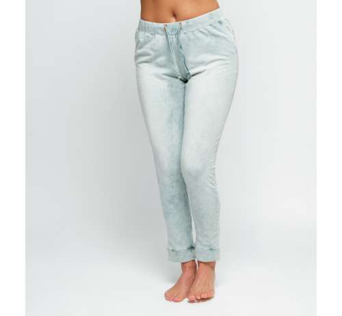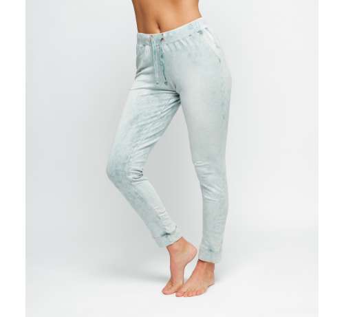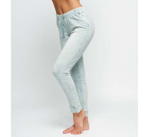 Ce jogging en coton et élasthane, est un modèle ample sur les hanches avec un cordon assorti, et élastique pour resserrer la taille .Il arrive jusqu'aux chevilles, la finition est style bord côte mais souple. Vous aimerez les couleurs délavées originales.c'est un modèle sans poche. il existe en différents coloris et vous pouvez le coordonner avec les tops collection délavée. Sans poches.