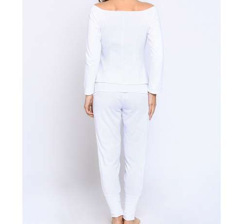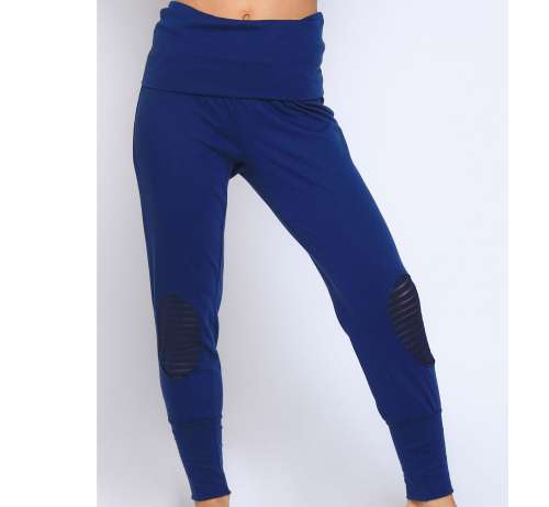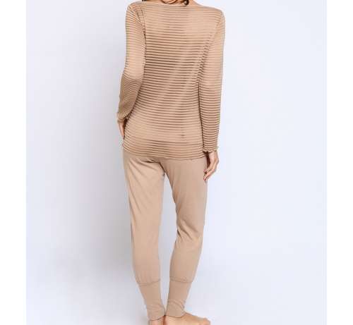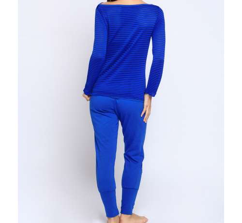 Magnifique pantalon glamour par son jeu de matière, un jersey coton agréable et la transparence discrète grâce à ses rayures aux genoux.