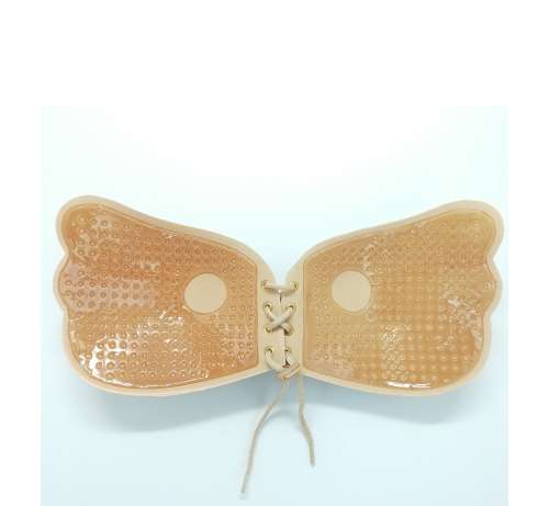 Soutien-gorge push-up auto-adhésif en silicone, fermeture à lacet avec régulateur à l’avant, permettant un maintien optimal et une parfaite invisibilité.