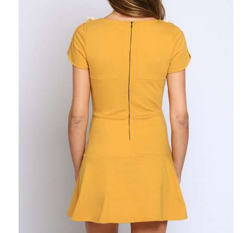 Robe manche courte, horné d'un nœud papillon sur le col blanc coton et dentelle.