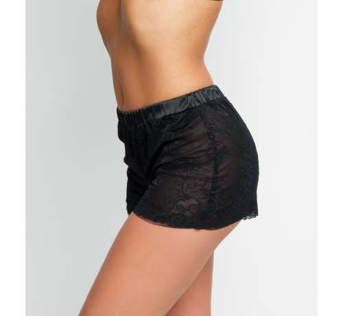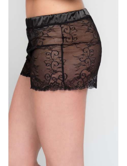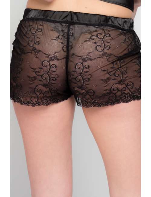 -Bande élastique satin au tour de taille, doublure en résille noir pour moins de transparence.