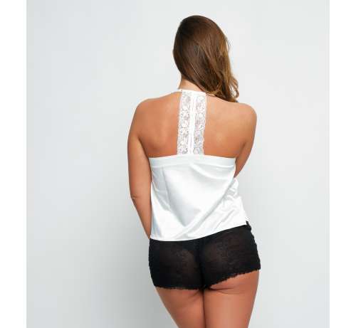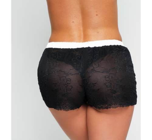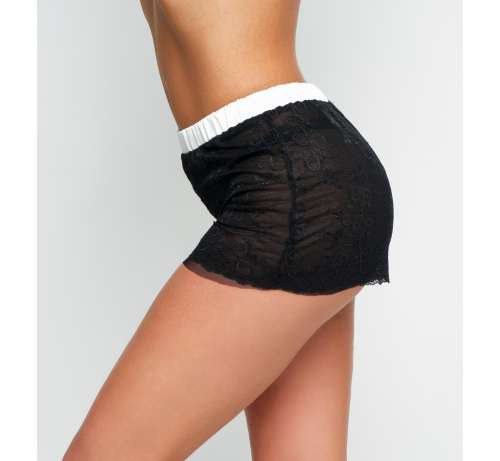 -Bande élastique satin au tour de taille, doublure en résille noir pour moins de transparence.