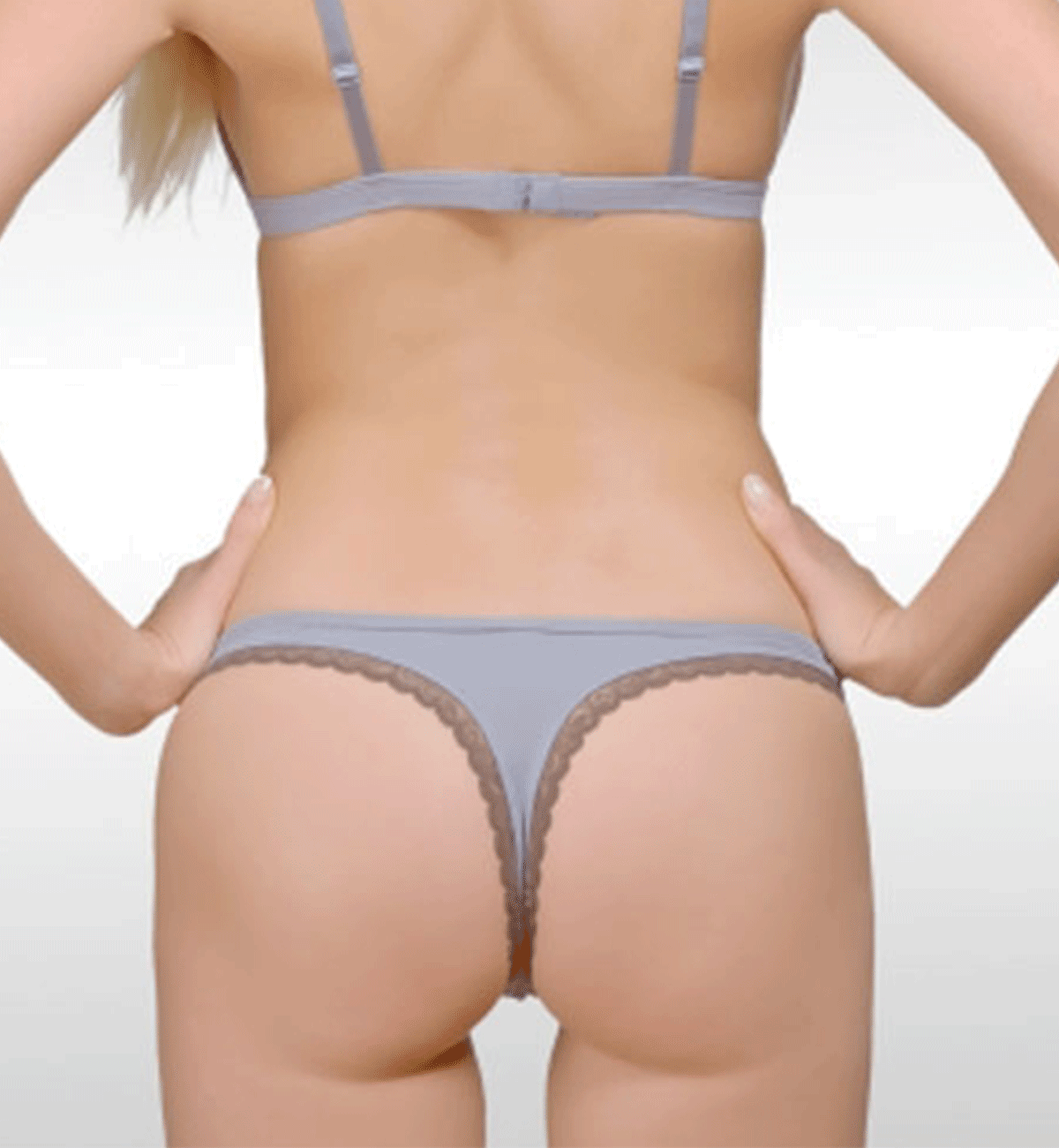 String en polyamide Nude au toucher très doux: une ligne très féminine, soulignée par une bande de dentelle contrastée.
