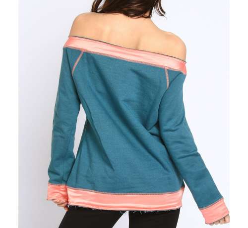 C'est un sweat bicolore long coupe droite avec des manches longues des surpiqures assortie sur toutes les bordures en bande satin.Facile à porter tous les jours