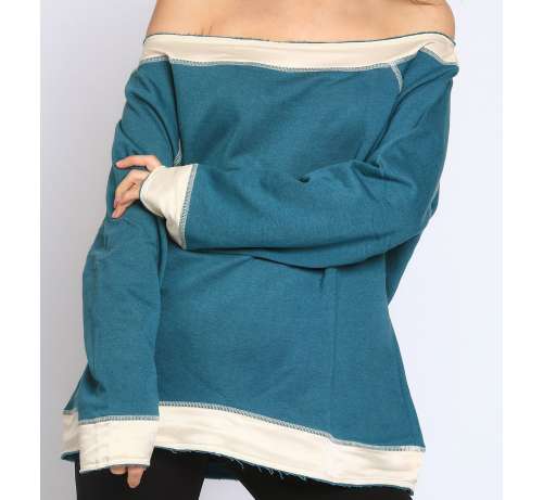 C'est un sweat bicolore long coupe droite avec des manches longues des surpiqures assortie sur toutes les bordures en bande satin.Facile à porter tous les jours
