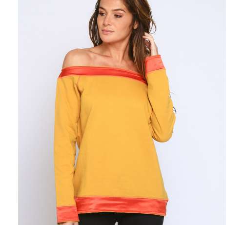 C'est un sweat bicolore long coupe droite avec des manches longues des surpiqures assortie sur toutes les bordures en bande satin.Facile à porter tous les jours