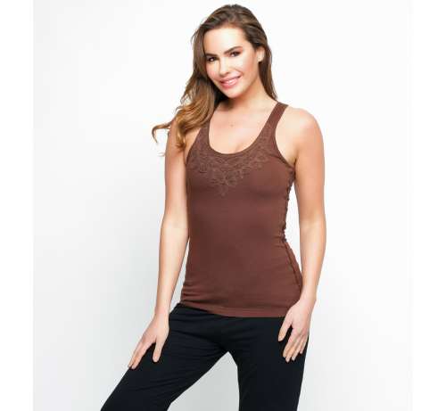 Débardeur long 100% coton avec une guipure sur le décolleté.