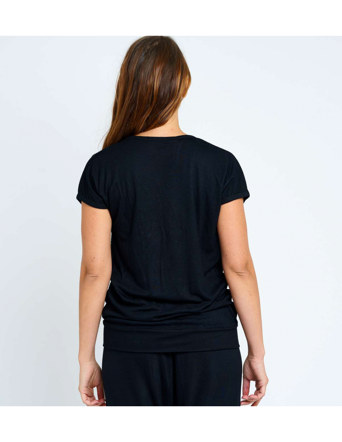 T-shirt long manche courte col décolleté, en matière 100% bambou.