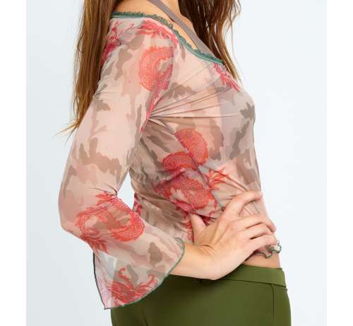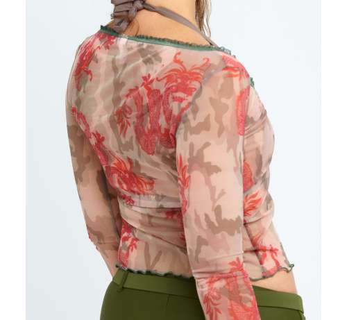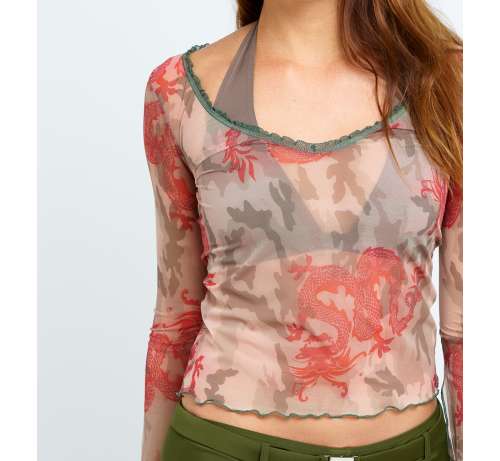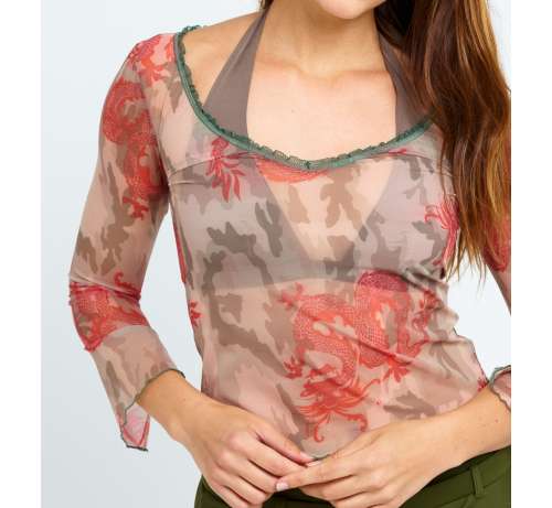 Top Plage imprimé Camouflage Dragon en résille pour se couvrir légèrement en sortant de l'eau.