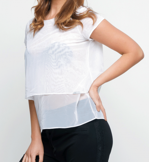 T Shirt en résille manche court et double résille ,col rond ,s'adapte tous les styles