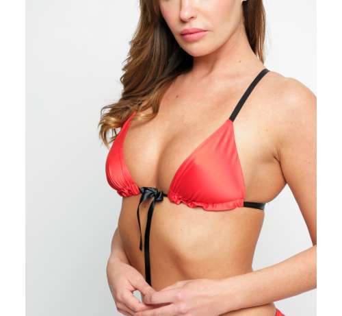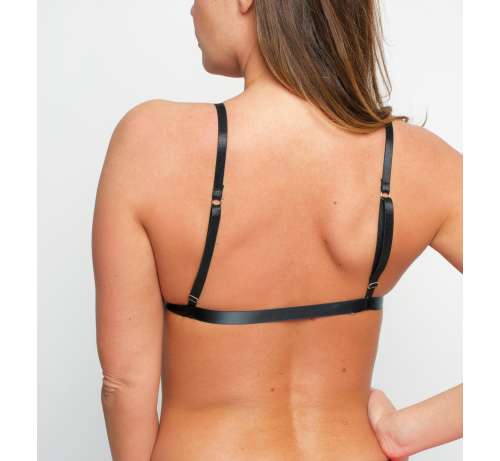 Soutien-gorge en forme triangle sans armature pour le confort, en satin avec ouverture et fermeture a l'avant avec un ruban satin.