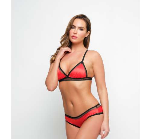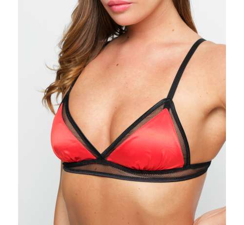C'est un modéle pin up glamour en forme triangle, sans armature, confortable qui assure le bon maintien de votre poitrine. Il est en satin et en résille. Vous pouvez l'assortir avec toute notre collection satin
