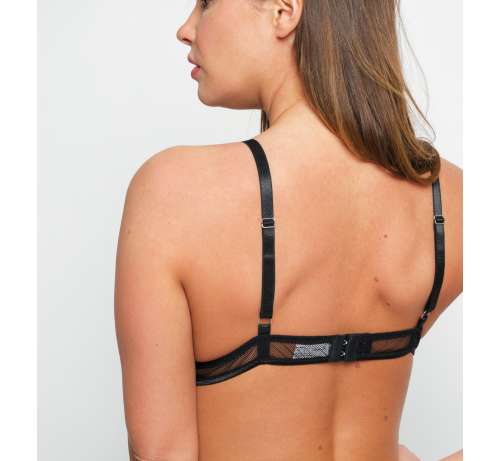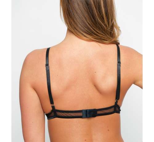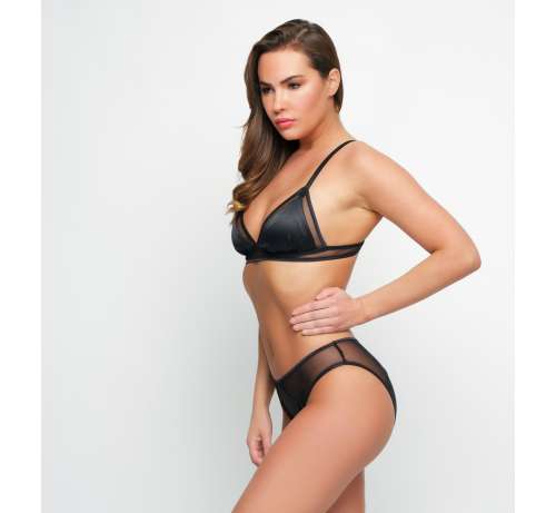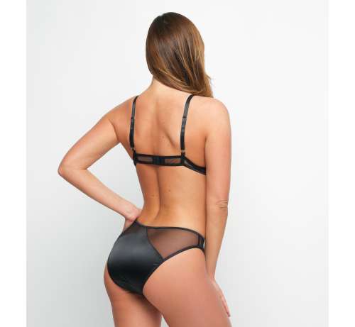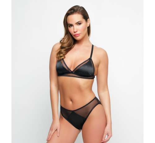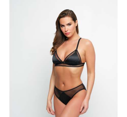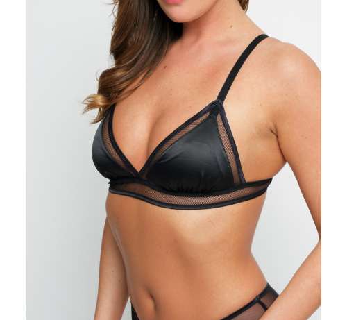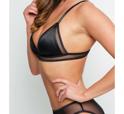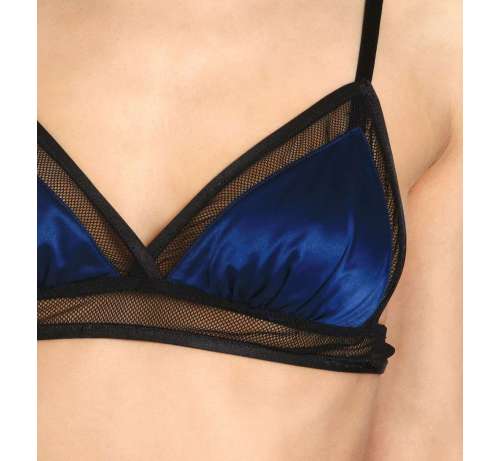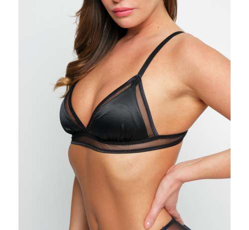 C'est un modéle pin up glamour en forme triangle, sans armature, confortable qui assure le bon maintien de votre poitrine. Il est en satin et en résille. Vous pouvez l'assortir avec toute notre collection satin